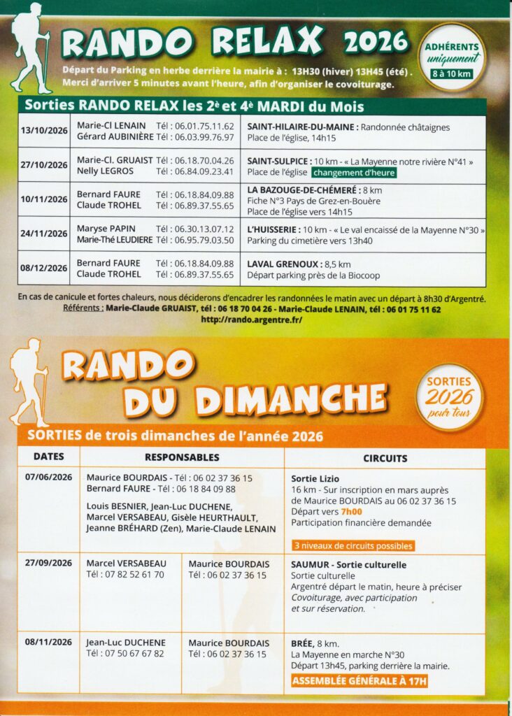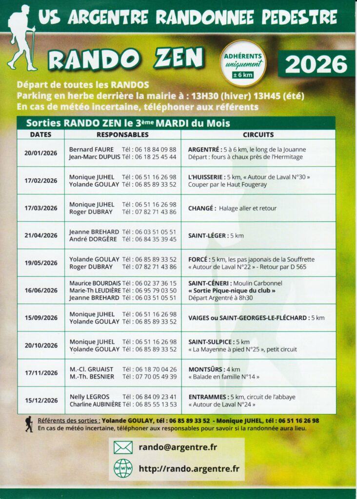 Agenda / Evenements Calendriers des sorties 2025 Planning de l'année 2025 Fiche Rando ZEN Fiche Rando du DIMANCHE Fiche Rando PLUS Fiche Rando RELAX